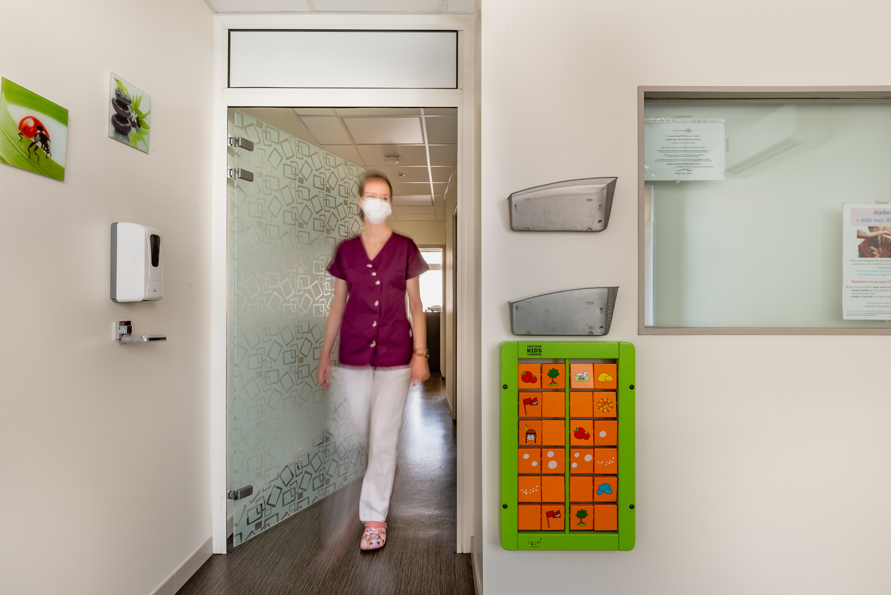 Un distributeur de gel hydro-alcoolique sans contact est à votre disposition en salle d’attente. Les magazines ont été supprimés.